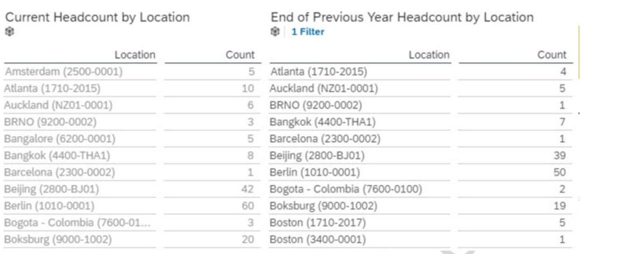would you configure a filter on the table End of Previous Year Headcount by Location to